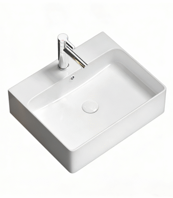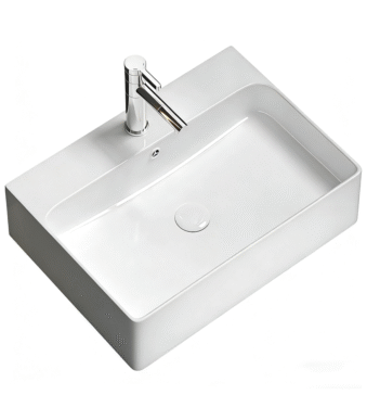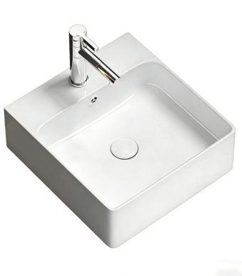 Bathroom countertop ceramic washbasin rounded square white