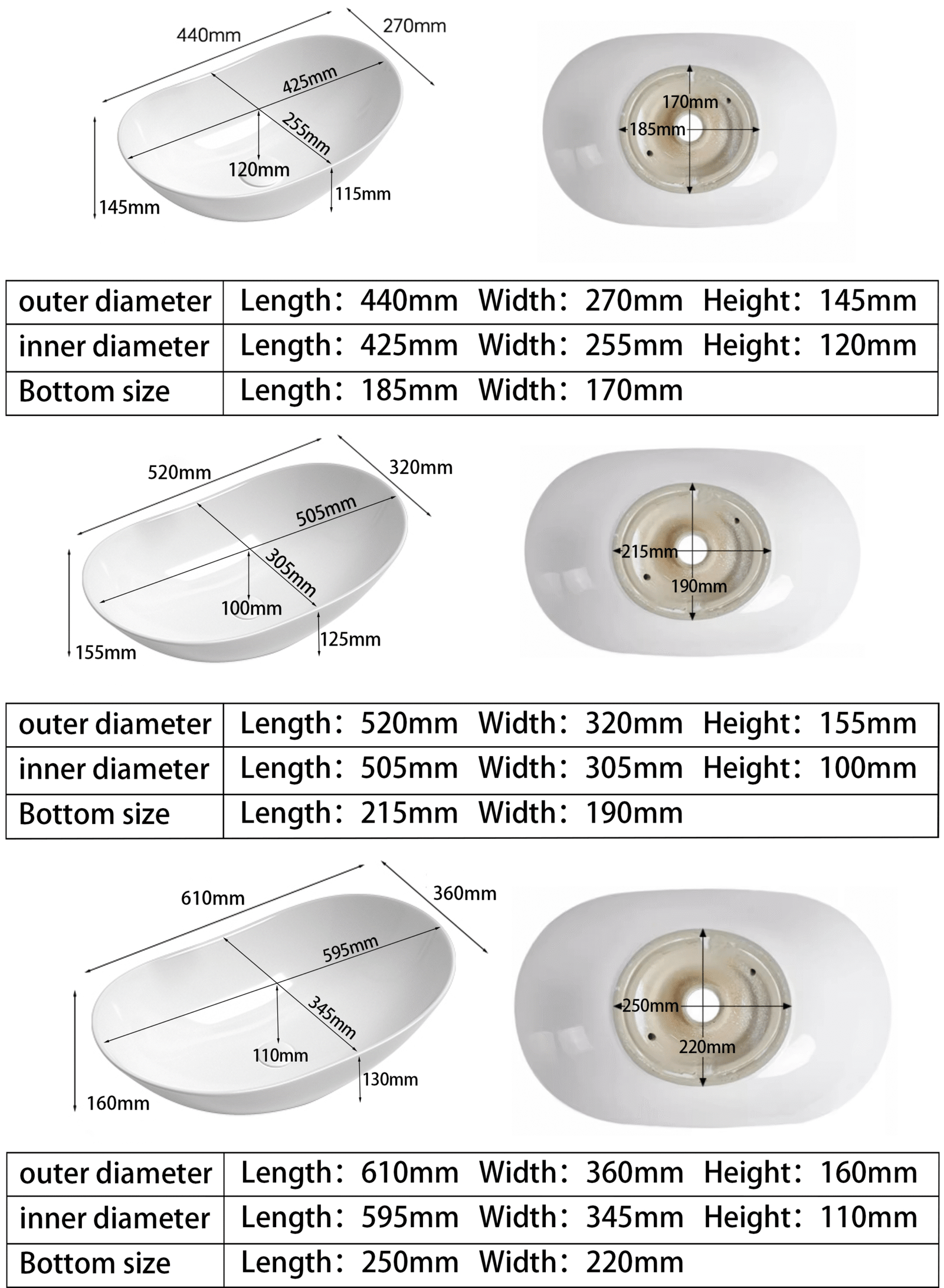 Length: 440mm Width: 270mm Height: 145mm ,Length:520mm Width:320mm Height:155mm ,Length:610mm Width:360mm Height:160mm |