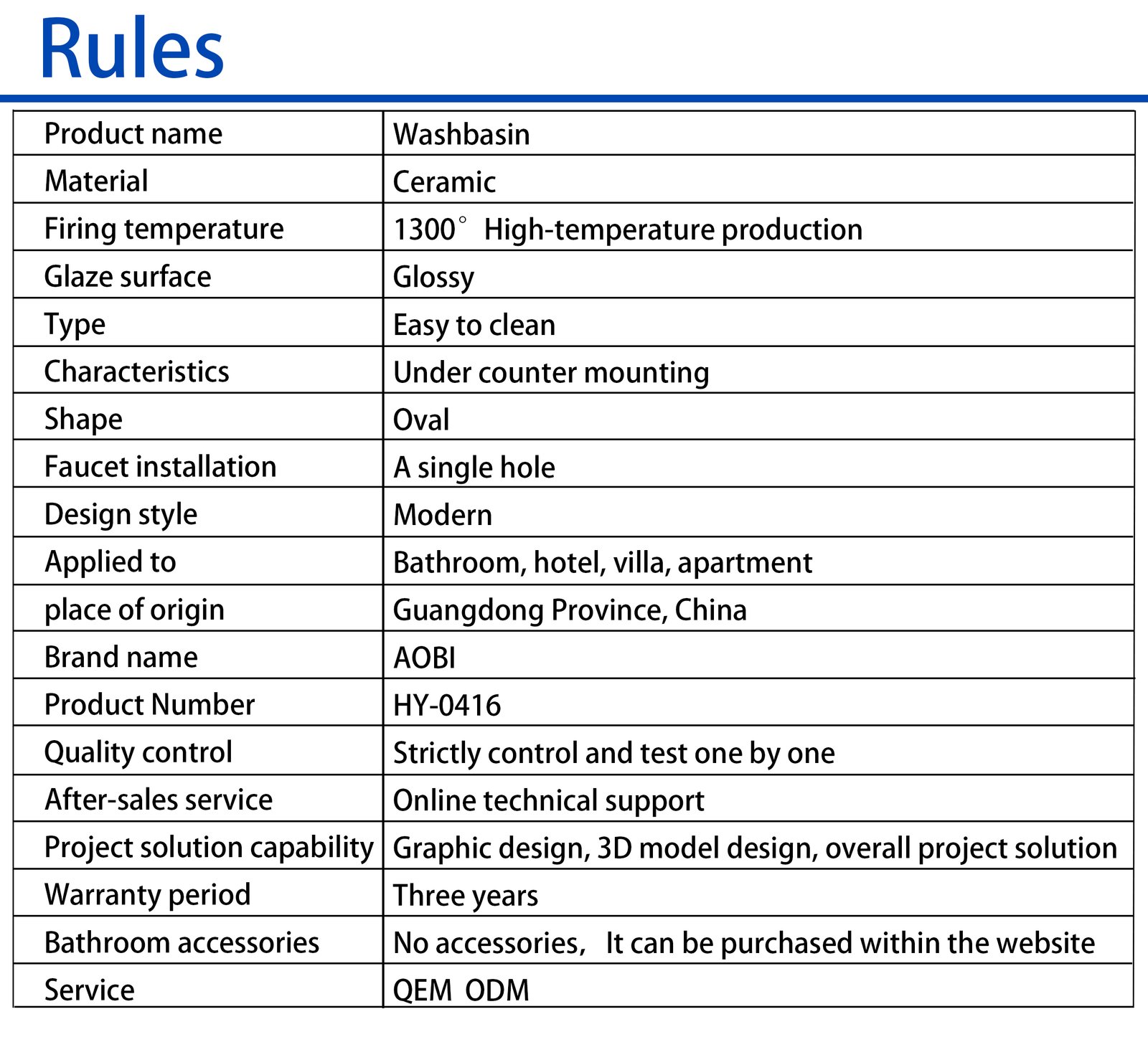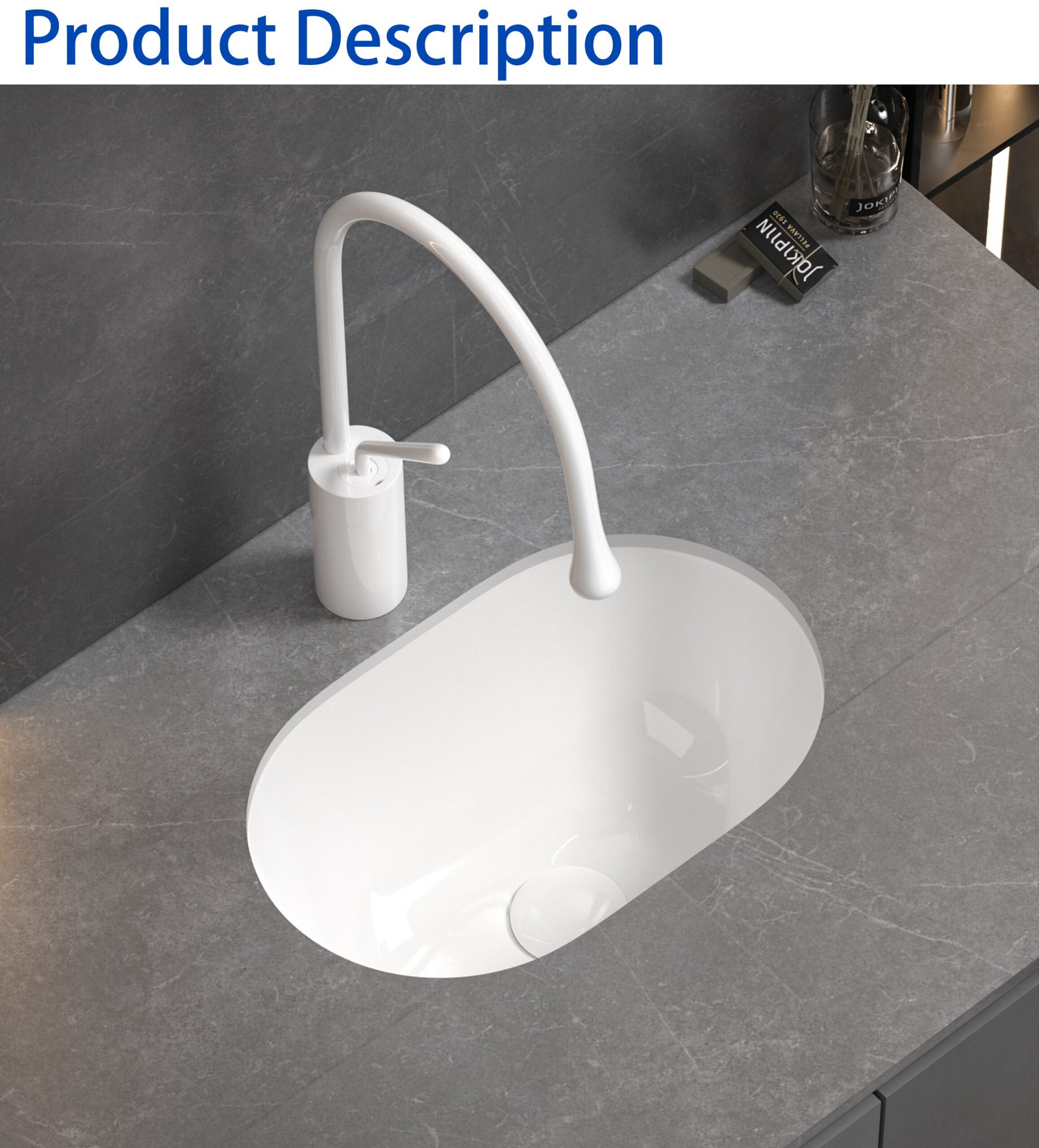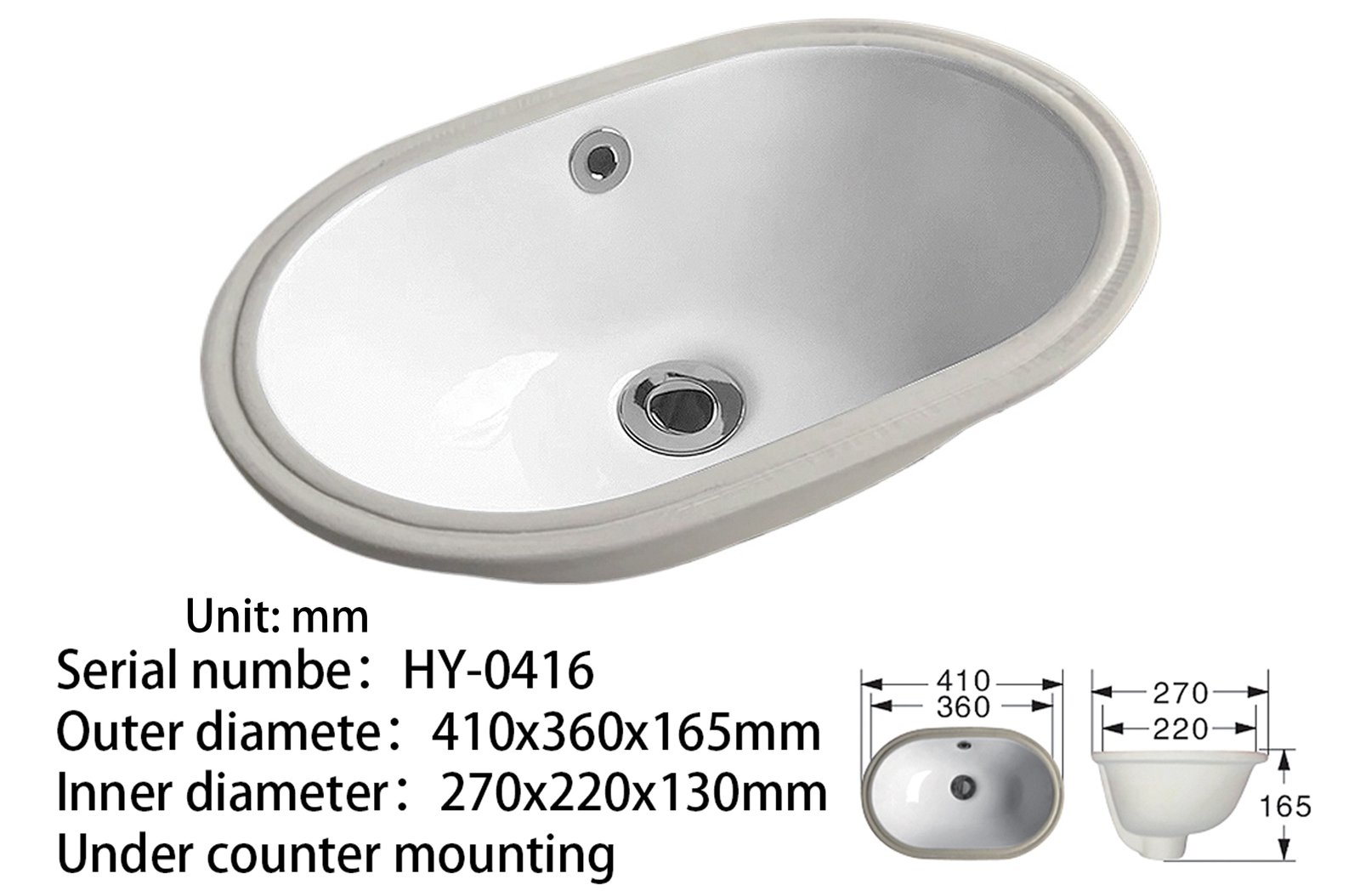 Bathroom oval washbasin ceramic under-counter sink 16 inches