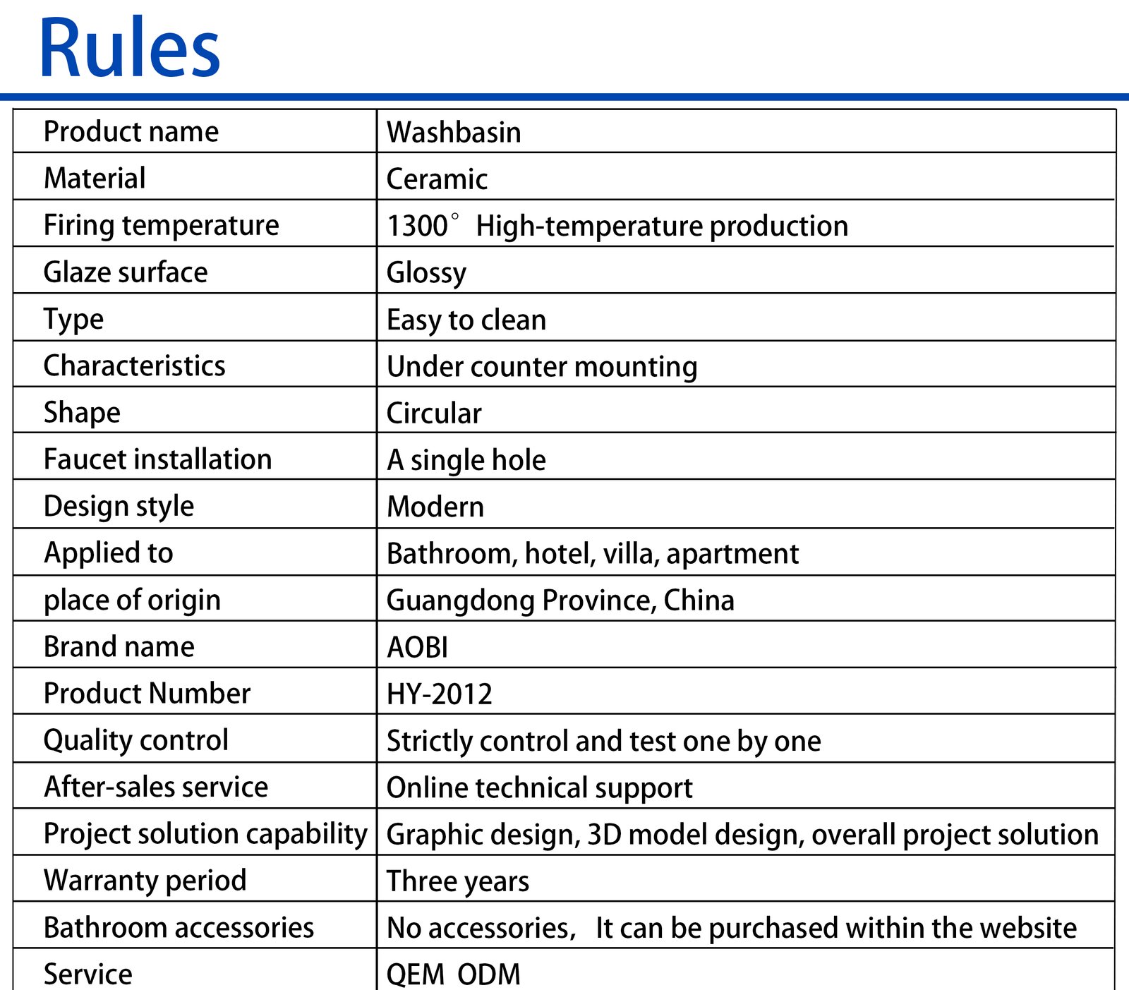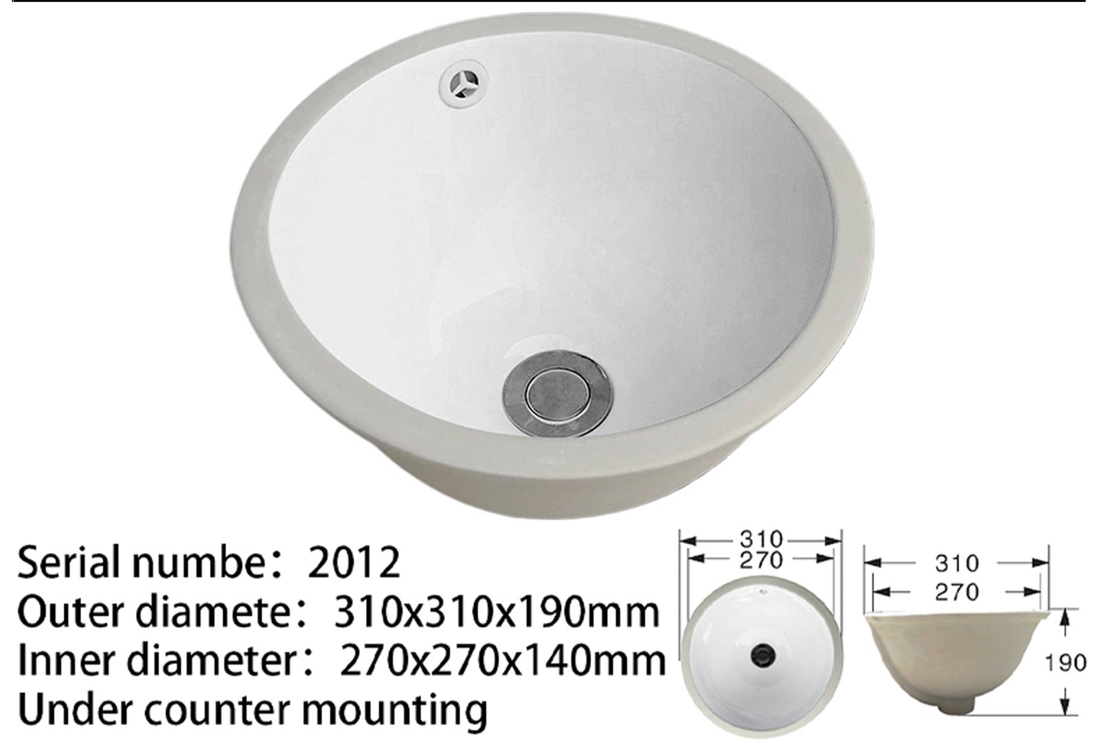 Bathroom round washbasin ceramic embedded sink size 12 inches